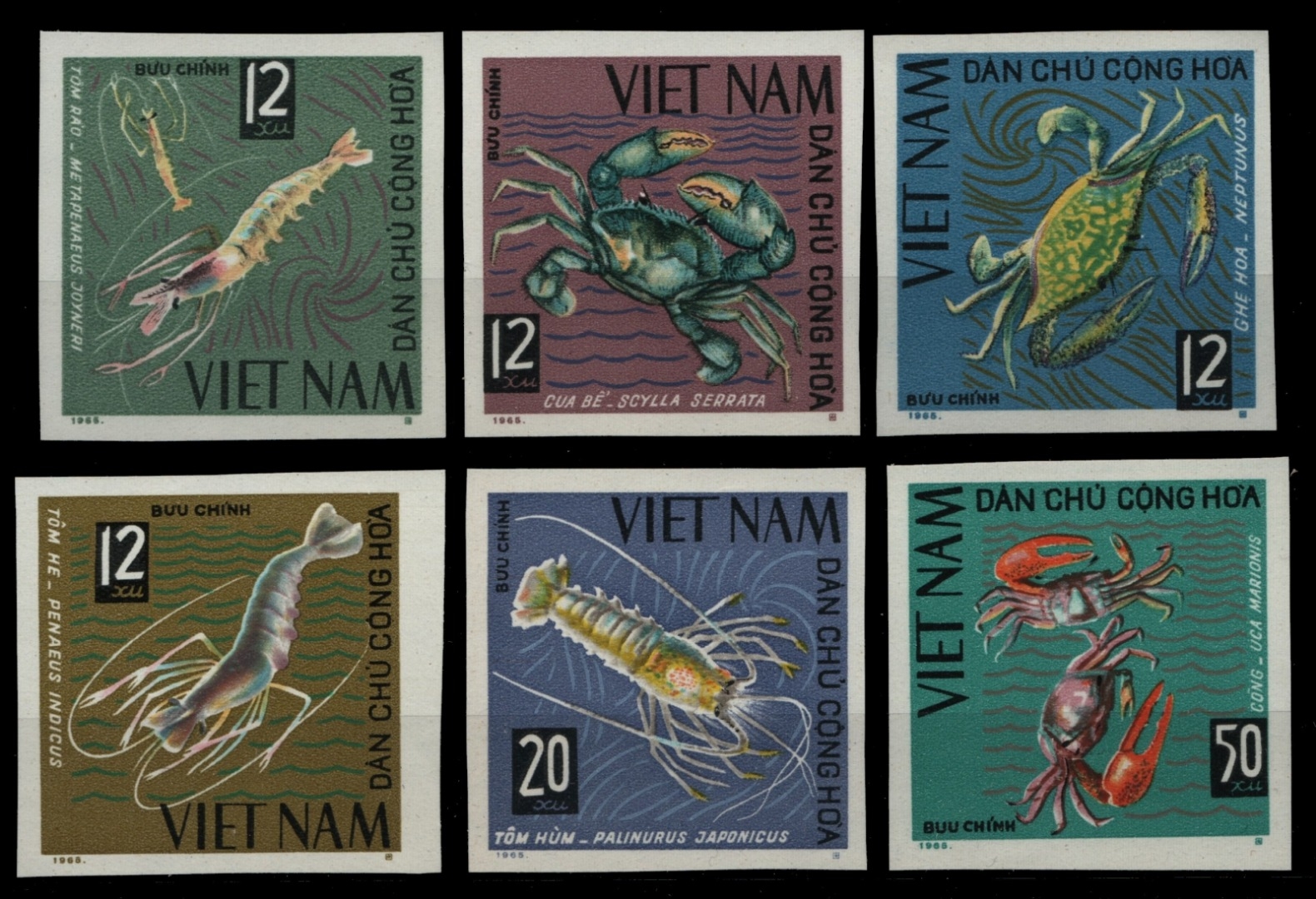 Vietnam 1965 - Mi-Nr. 387-392 U (*) - ohne Gummi verausgabt - Krebstiere