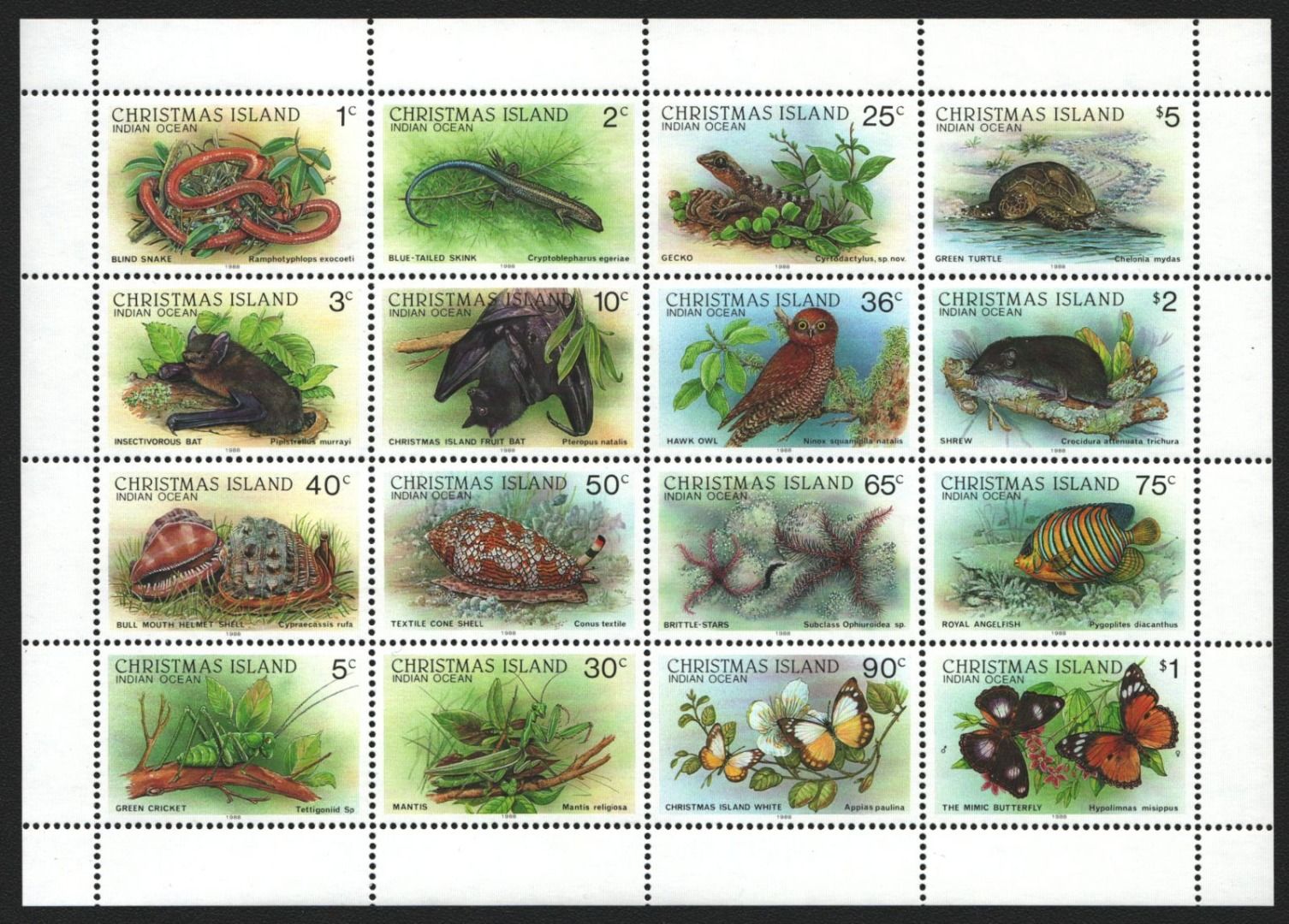 Weihnachtsinsel 1988 - Mi-Nr. 233-248 II ** - MNH - ZDR-Bogen - Fauna (III)