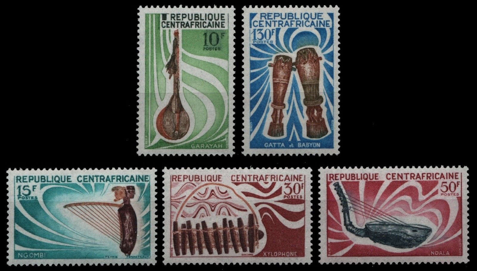 Zentralafrikanische Rep. 1970 - Mi-Nr. 202-206 ** - MNH - Musikinstrumente